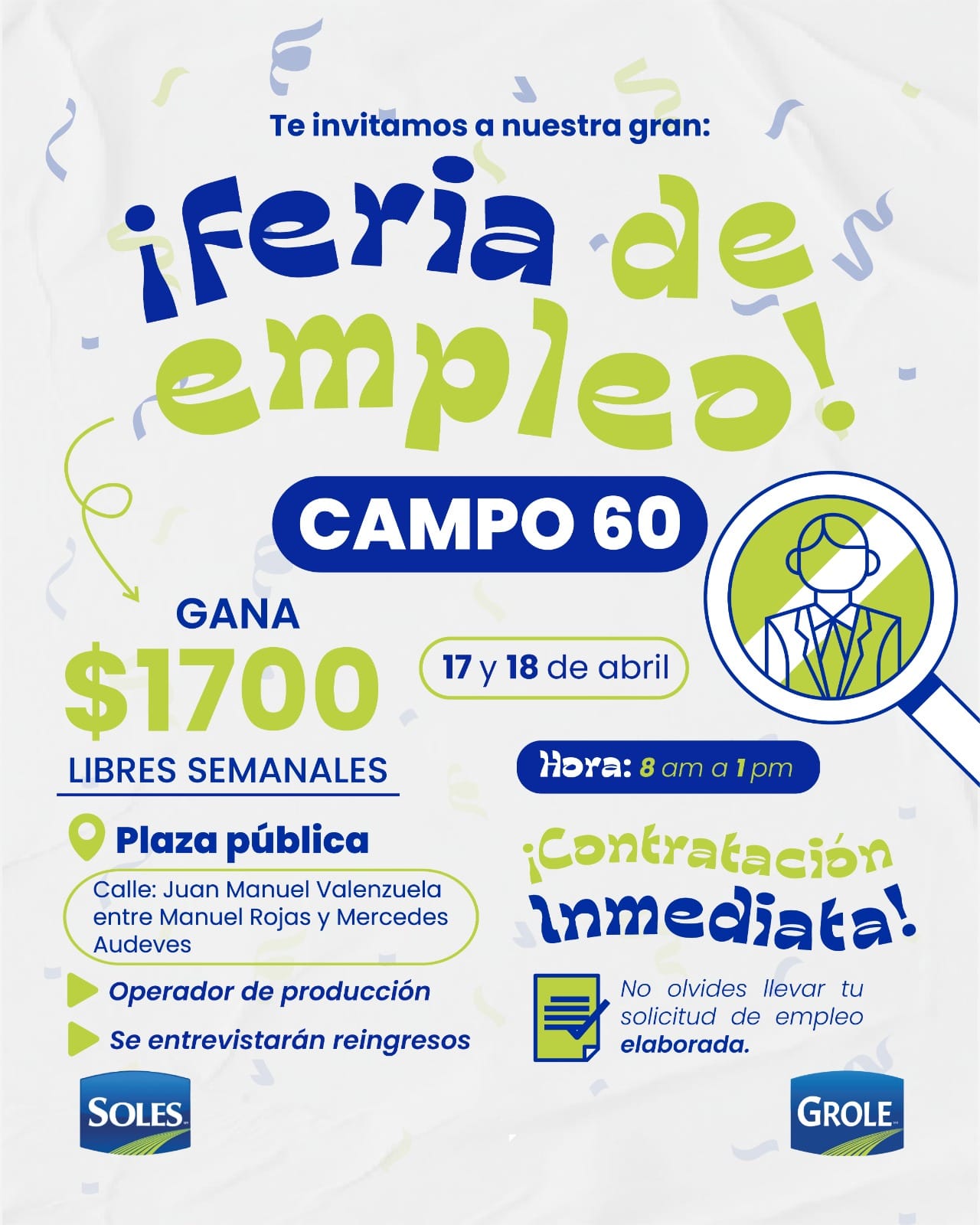 Grupo Soles te invita a su gran feria del empleo en Campo 60