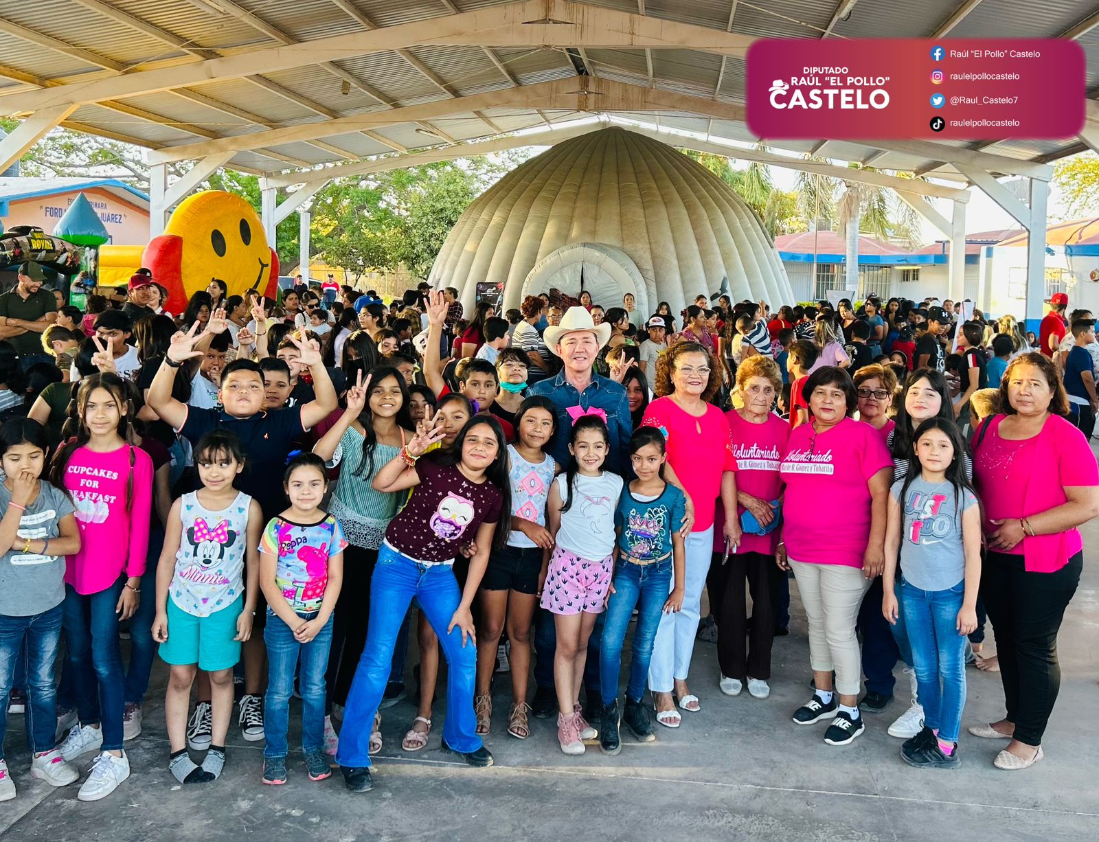 Menores de la Zona Urbana, la Marte R. Gómez y del Tobarito, estuvieron acompañados de sus papás en la Escuela Primaria Ford-122 Benito Juárez, donde además partieron pastel, quebraron la tradicional piñata, brincaron y degustaron de otros antojitos como nachos, cóctel de elote y palomitas, y cenaron ricos hotdogs y tacos.