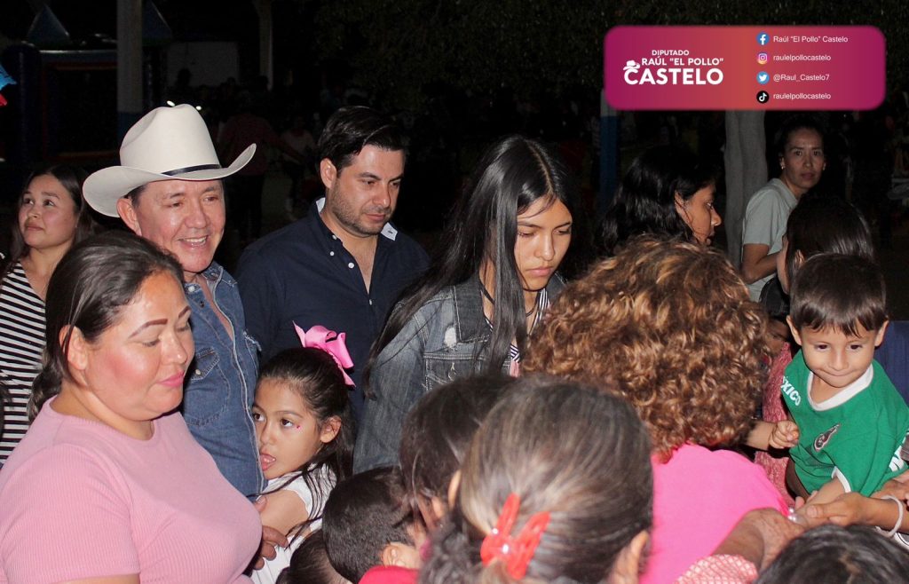 – Raúl “El Pollo” Castelo Montaño agradeció a la comisaria Martha Bojórquez Mascareño, así como a José Carlos Ureña Gutiérrez, director de la Escuela Primaria Ford-122 Benito Juárez, la recepción para el festejo