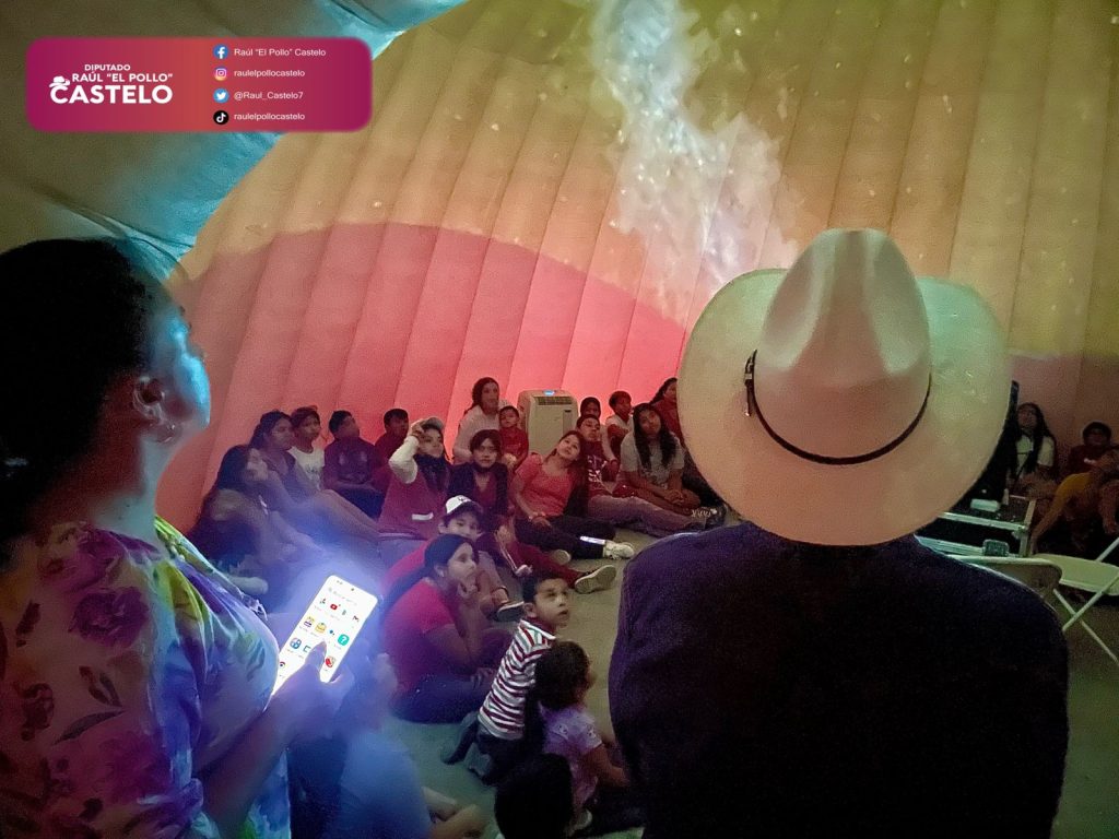 Marte R. Gómez y Tobarito.- Para reconocer a los niños y niñas de la comisaría de la Marte R. Gómez y Tobarito, Raúl “El Pollo” Castelo Montaño, Diputado Local del Distrito XV, llegó con el Planetario Mágico del Pueblo.