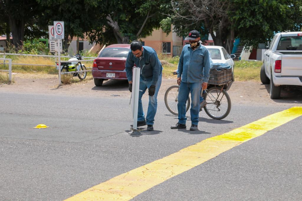 El Policía Manuel de Jesús Gutiérrez Arredondo, Comandante de Tránsito de la SSPM, informó que se trabajó en la instalación de bollas reductoras de velocidad, rayas logarítmicas de prevención color amarrillo e indicadores de obstáculos.