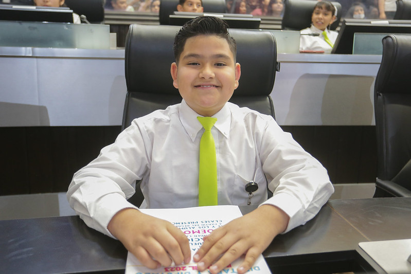 En esta edición 2023, el diputado infantil Jonatan Alejandro Vásquez Pacheco, representante del Distrito IX con cabecera en Hermosillo Centro, fungió como presidente de la mesa directiva.