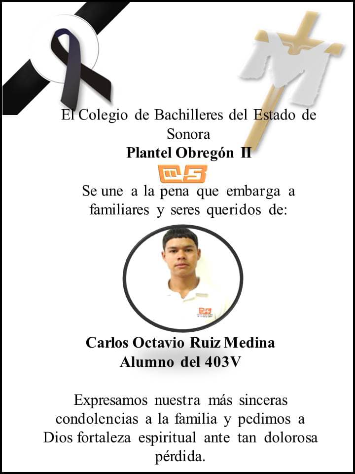 Carlos Octavio Ruiz Medina, de 17 años de edad, perdió la vida la mañana de este miércoles al ser impactada la motocicleta en que viajaba por una unidad de la AMIC en Ciudad Obregón.
