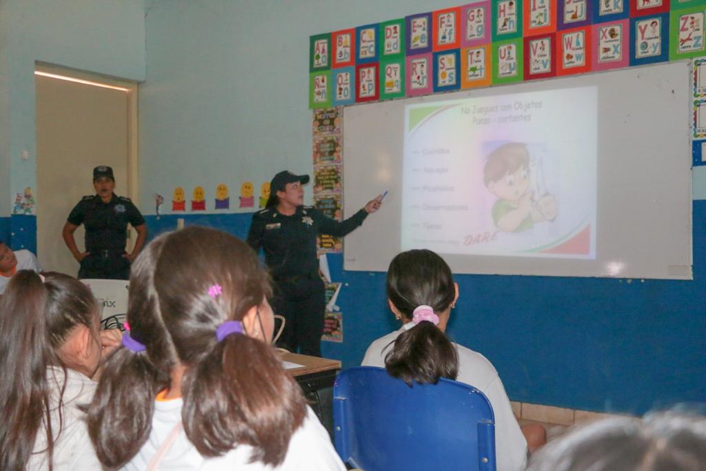 La Secretaría de Seguridad Pública Municipal a través de oficiales DARE de la Dirección de Programas en Prevención del Delito de la corporación policial, llevó a cabo en la escuela primaria Herman Bruss, la impartición de pláticas sobre la seguridad personal a alumnas y alumnos de cuarto grado.