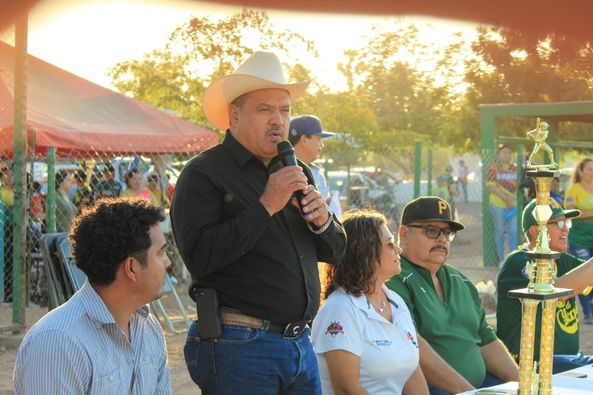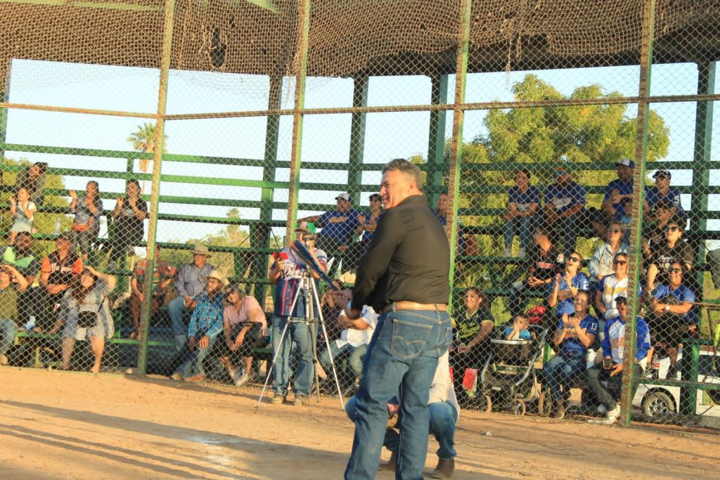 En un evento en donde se encontraban niños y jóvenes deportistas, así como padres de familia, el presidente municipal de Bácum, Serge Enriquez Tolano, lanzó la primera bola.