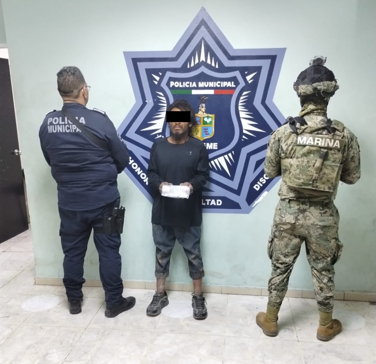 Por la probable comisión del delito en contra de la salud, elementos de la Secretaría de Seguridad Pública Municipal y Marina, capturaron durante la noche del viernes en la colonia el Túnel, a Isidro “N.” de 39 años de edad.
