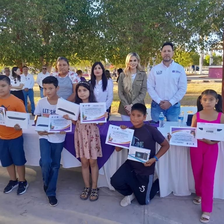 Benito Juárez.- El Grupo Parlamentario del PES en el Congreso del Estado, integrado por el diputado Kiko Munro y la diputada Paloma Terán llevaron a cabo la premiación con tablets electrónicas a las niñas y niños de nivel primaria que participaron en el concurso de dibujo infantil “Paisajes Sonorenses” en este municipio.