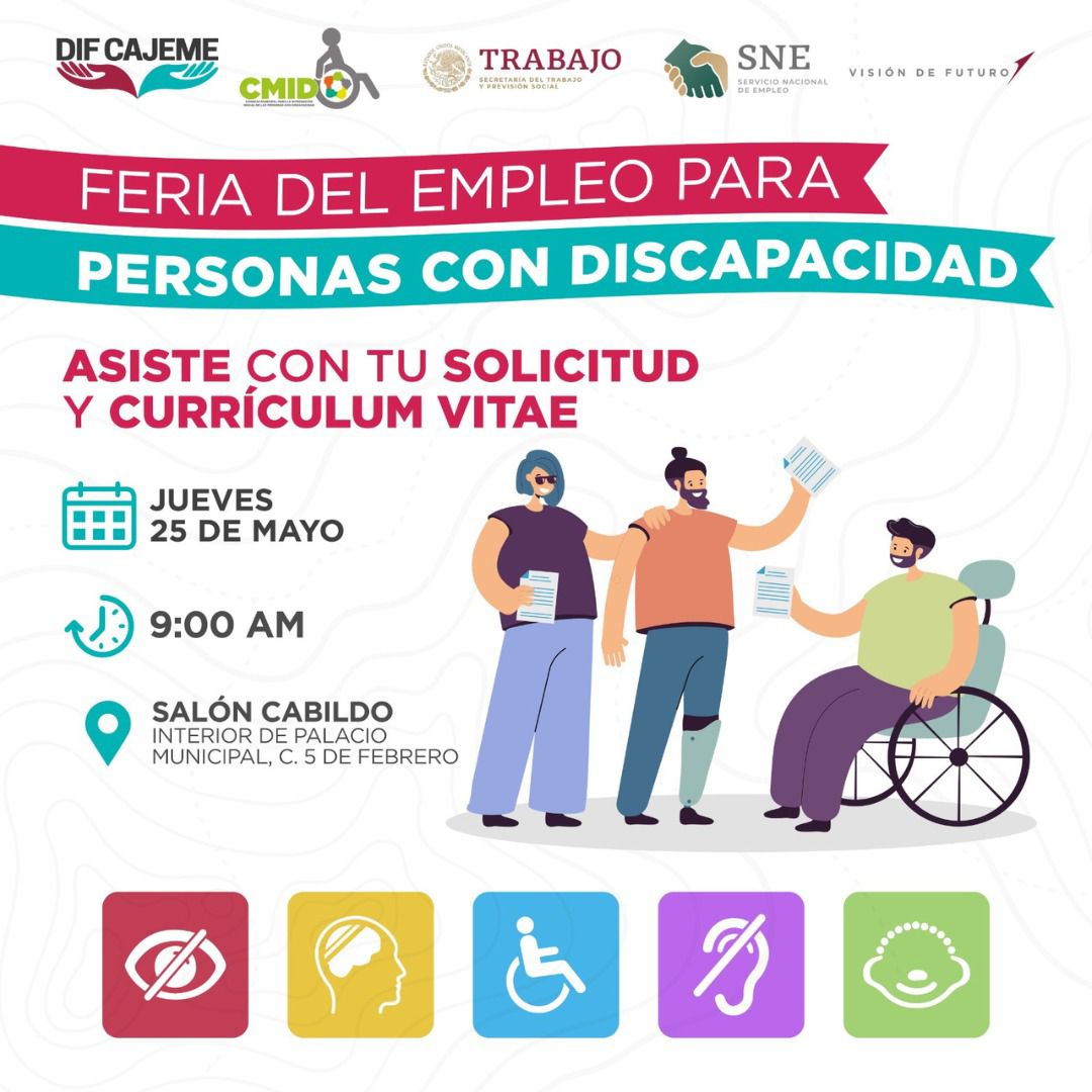 Con el propósito de fomentar la inclusión y apoyar a las personas que más lo necesitan, DIF Cajeme en coordinación con el Servicio Nacional del Empleo (SNE) y la Secretaría del trabajo y previsión social invitan a la feria del empleo para personas con discapacidad.