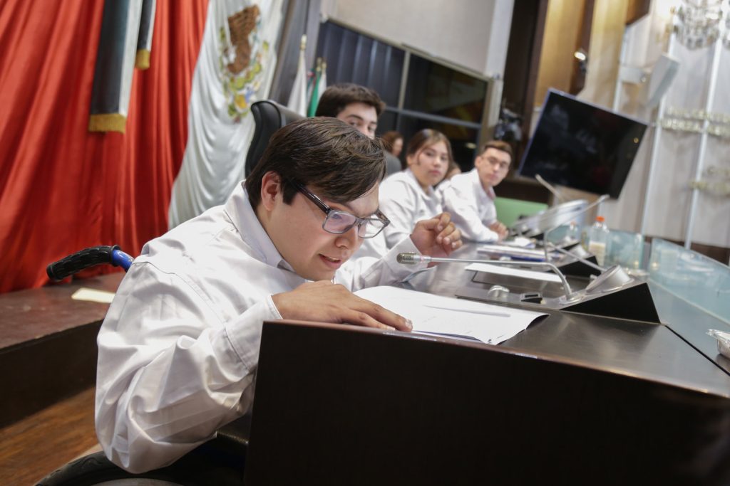 Luego de rendir la protesta de Ley ante el Pleno de esta Soberanía, la diputada López Noriega cedió el uso de la tribuna a las y los jóvenes integrantes del Parlamento Juvenil, mismo que presidió los trabajos de la mesa directiva Hermes Isaac Herrera García y lo acompañaron María Arlette Barrón Escobar, como Vicepresidente; Diego Hernán Acevedo Contreras, como primer secretario; Jehymi Audrey Cejudo Figueroa; como segunda secretaria; y Ángel Santiago Acosta Navarro, suplente.