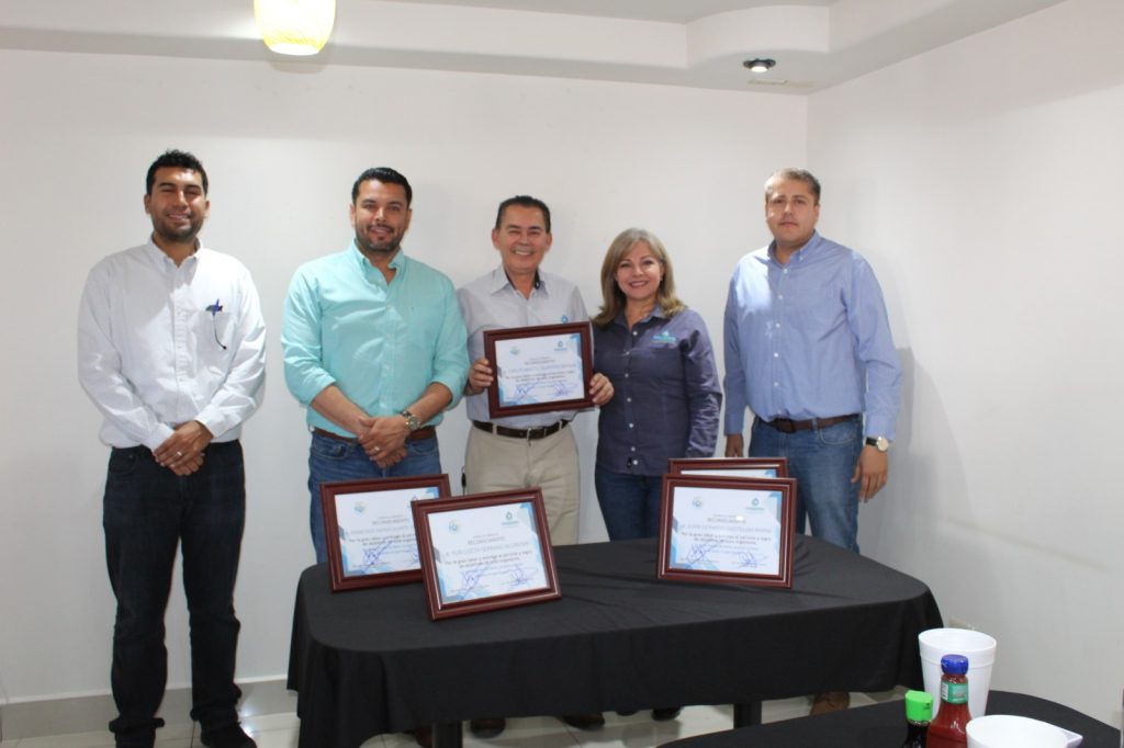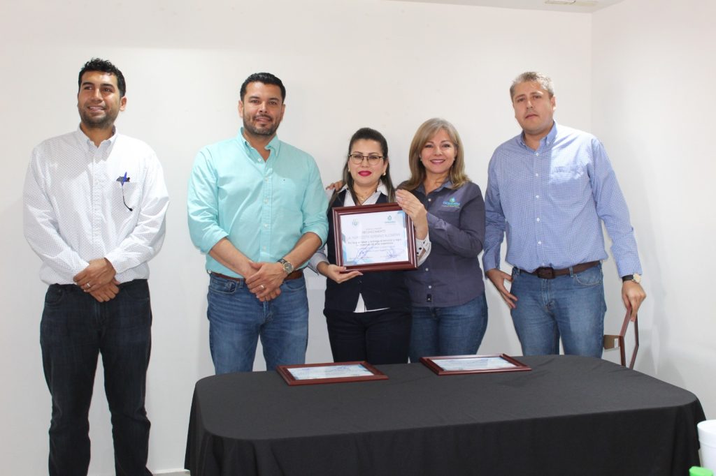 Acompañado de la secretaria general del Sindicato Alternativo de OOMAPAS de Cajeme (SAOC), Matilde García Morales, del director comercial Lic. Edgar Jiménez Martínez y el gerente de contratos y servicios Lic. Anselmo Valenzuela, se reconoció a 5 trabajadores de las distintas áreas por su trayectoria de trabajo.