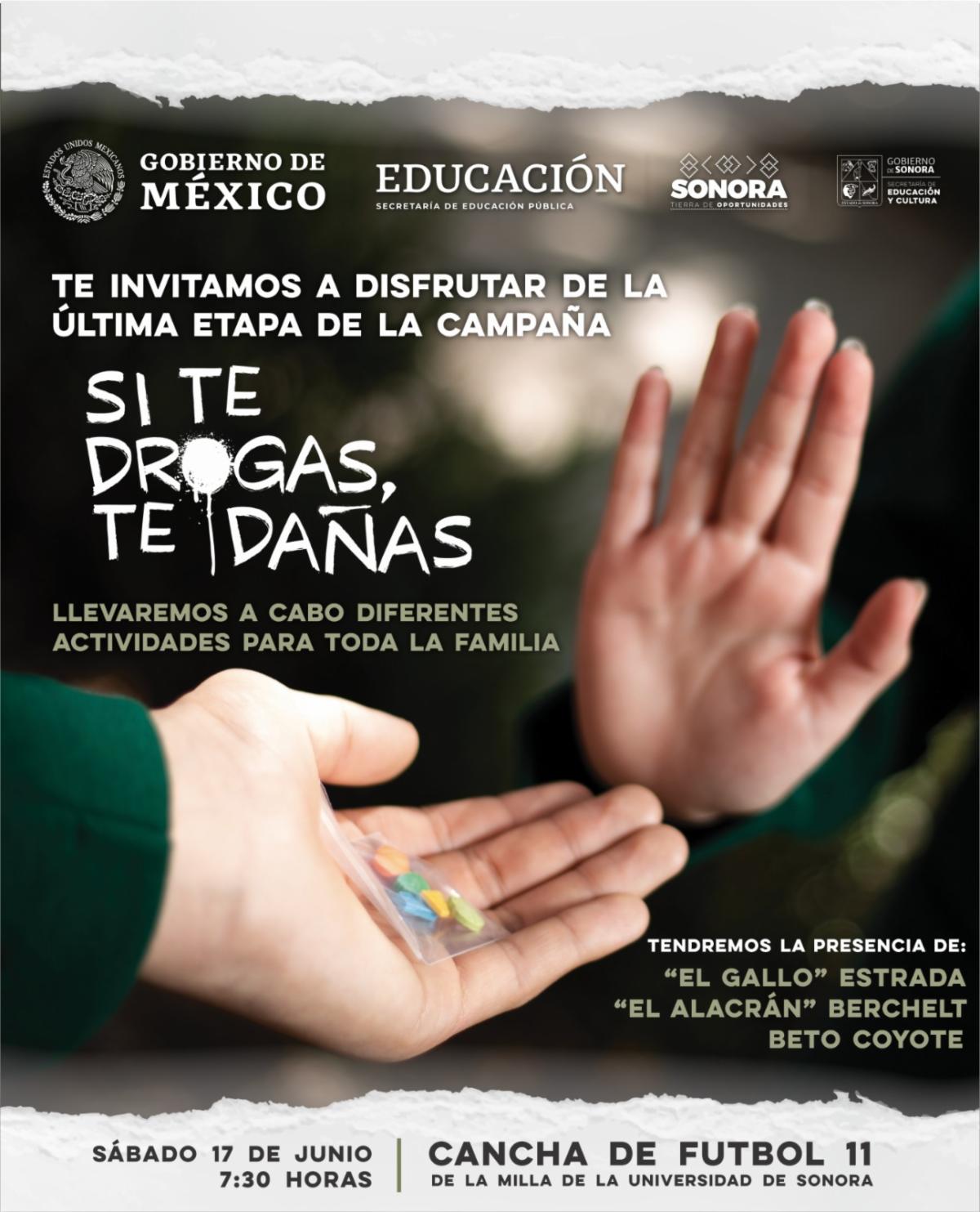 Hermosillo.- La comunidad educativa sonorense se sumará a la Jornada Nacional de Actividades Públicas. De la escuela a la comunidad, convocada por la Secretaría de Educación Pública (SEP), como parte de la campaña Si Te Drogas, Te Dañas.