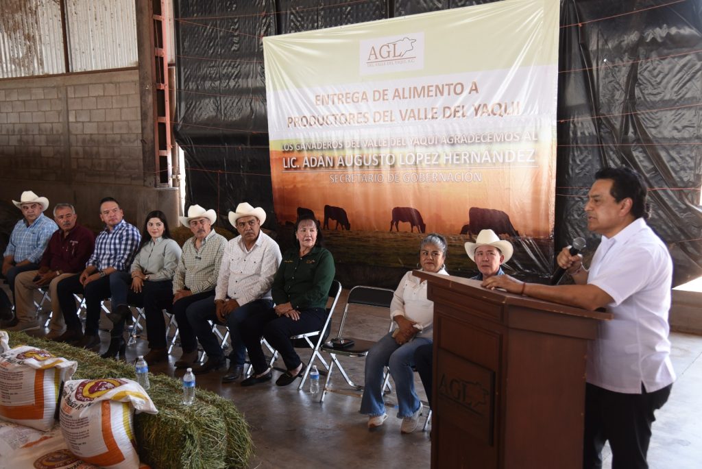 Al participar en la entrega de 137 toneladas de alimento para ganado, el Presidente Municipal, Javier Lamarque Cano cumplió con su gestión que realizó ante el Secretario de Gobernación, Adán Augusto López Hernández, a favor de la Asociación Local de Ganaderos del Valle del Yaqui, a fin de disminuir los efectos provocados por la sequía en la región sur de Sonora.