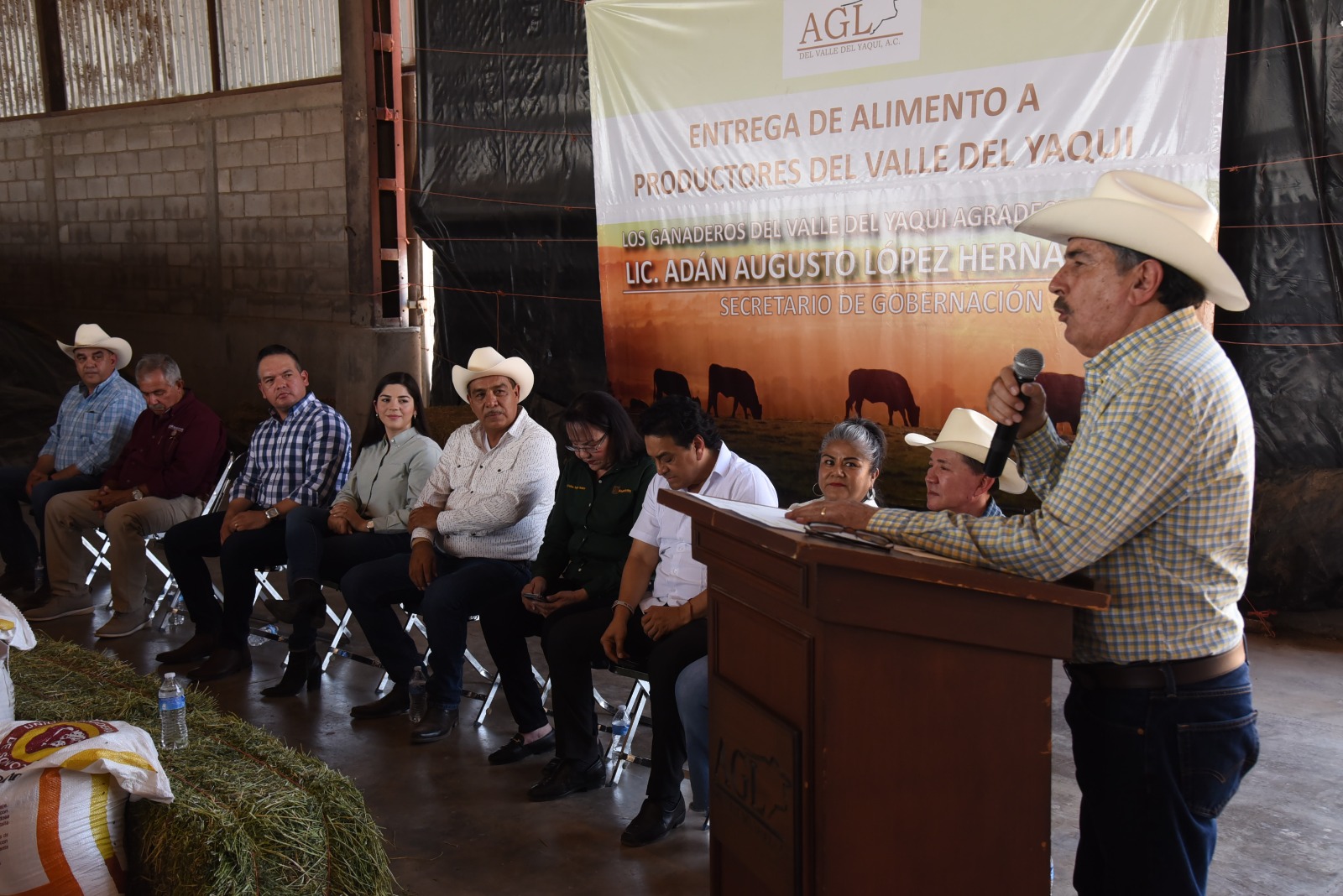 Al participar en la entrega de 137 toneladas de alimento para ganado, el Presidente Municipal, Javier Lamarque Cano cumplió con su gestión que realizó ante el Secretario de Gobernación, Adán Augusto López Hernández, a favor de la Asociación Local de Ganaderos del Valle del Yaqui, a fin de disminuir los efectos provocados por la sequía en la región sur de Sonora.