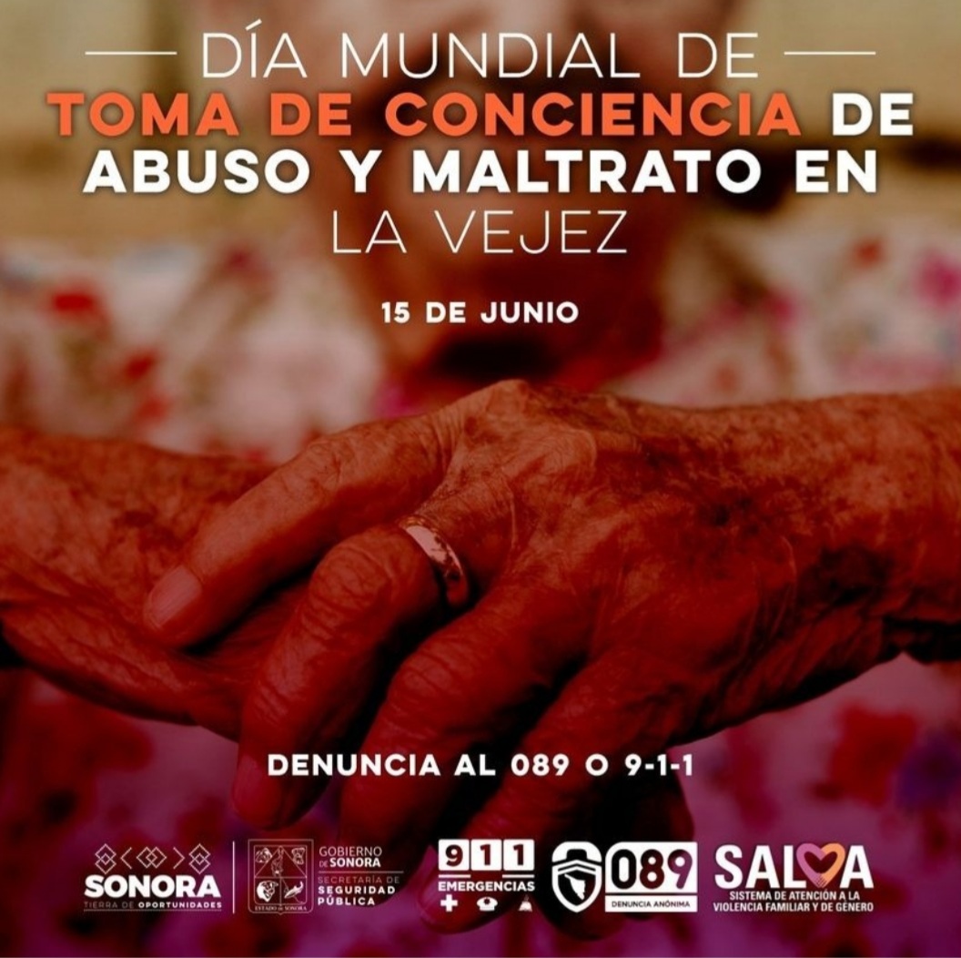 Hermosillo.- La Secretaría de Seguridad Pública (SSP) de Sonora, a través del Sistema de Atención a la Violencia Familiar y de Género (Salva), exhortó a la ciudadanía a reportar abusos y maltratos hacia adultos mayores en la línea 9-1-1 o denunciar en forma anónima en el 089.