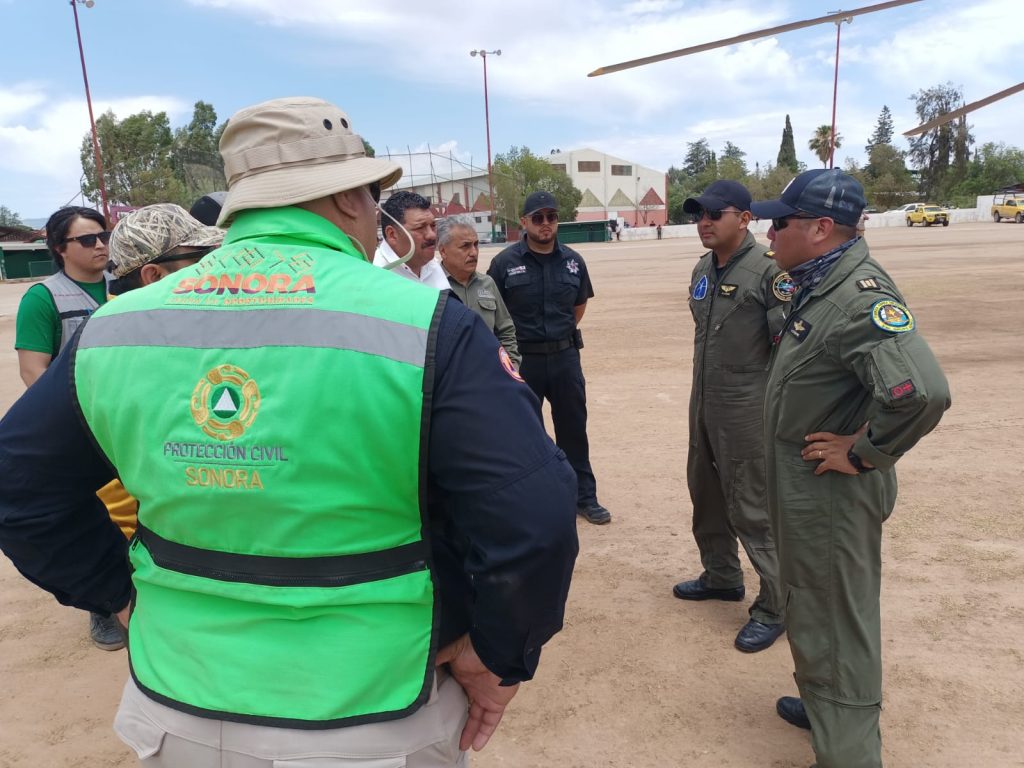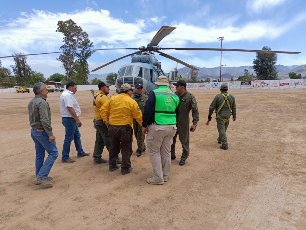 Un helicóptero Mi-17 de la Fuerza Aérea Mexicana llegó a Ímuris para apoyar en el control del incendio forestal en la sierra de ese municipio.