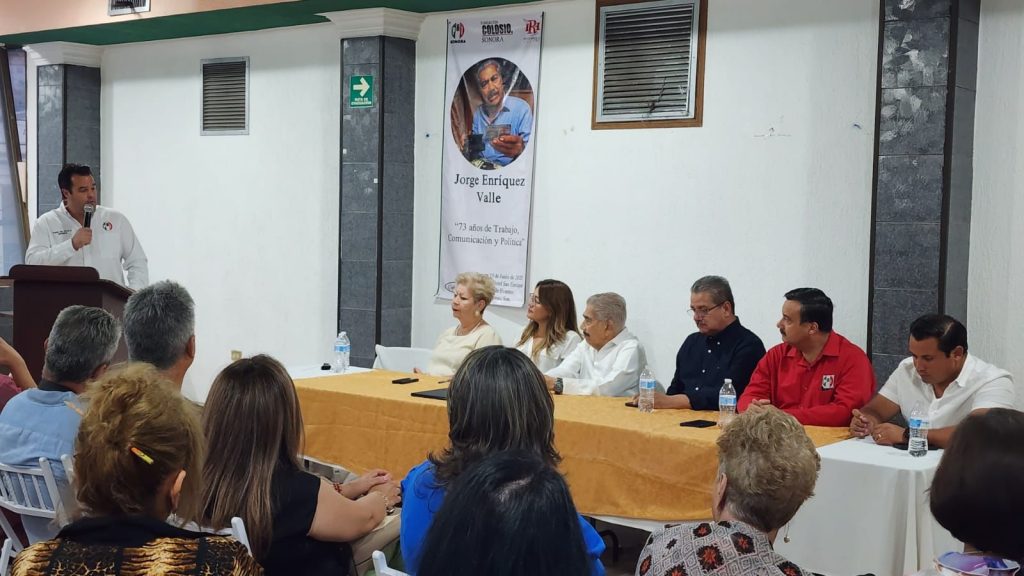 Durante el emotivo evento, que contó con la presencia de amigos de la clase política, ex compañeros de los medios de comunicación y familiares, su hijo, Jorge Enríquez Araujo, agradeció el reconocimiento organizado por el Partido, la Fundación Colosio y el Sindicato de la Radio, Televisión y Telecomunicaciones (STIRTT) en honor a su padre.
