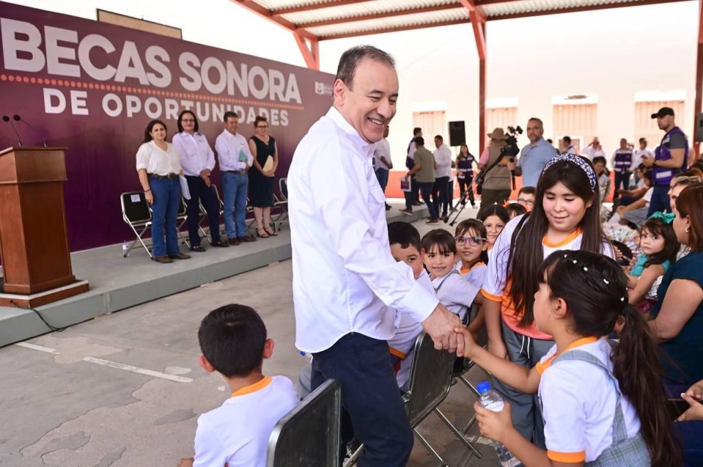En el rubro educativo en Arizpe el gobernador Alfonso Durazo entregó 345 becas del programa Sonora de Oportunidades para niñas y niños de ese municipio y también de Bacoachi, donde resaltó la importancia de que las y los niños en la entidad cuenten con este tipo de apoyos para que con la ayuda de sus padres logren alcanzar sus sueños.