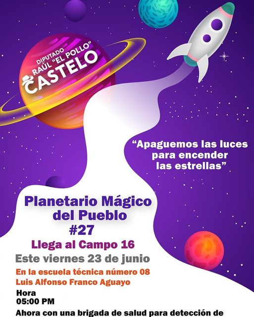 El Planetario Mágico Del Pueblo del diputado “El Pollo” Castelo llega este viernes 23 de junio 👧 ❤️🤩🤠💫⭐️🪐🌏🌘🌚☄️✨🌏