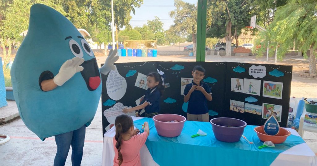 En colaboración con la escuela primaria “Guardianes Ecológicos” de Esperanza, este miércoles, acudió “La Gotita” del OOMAPAS de Cajeme a la escuela primaria Cámara Junior de la comunidad de Cócorit, para promover valores del cuidado de la naturaleza, con énfasis en el cuidado del agua.