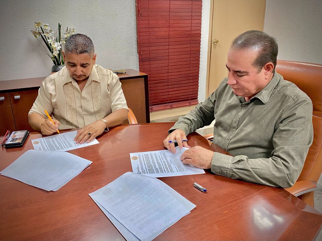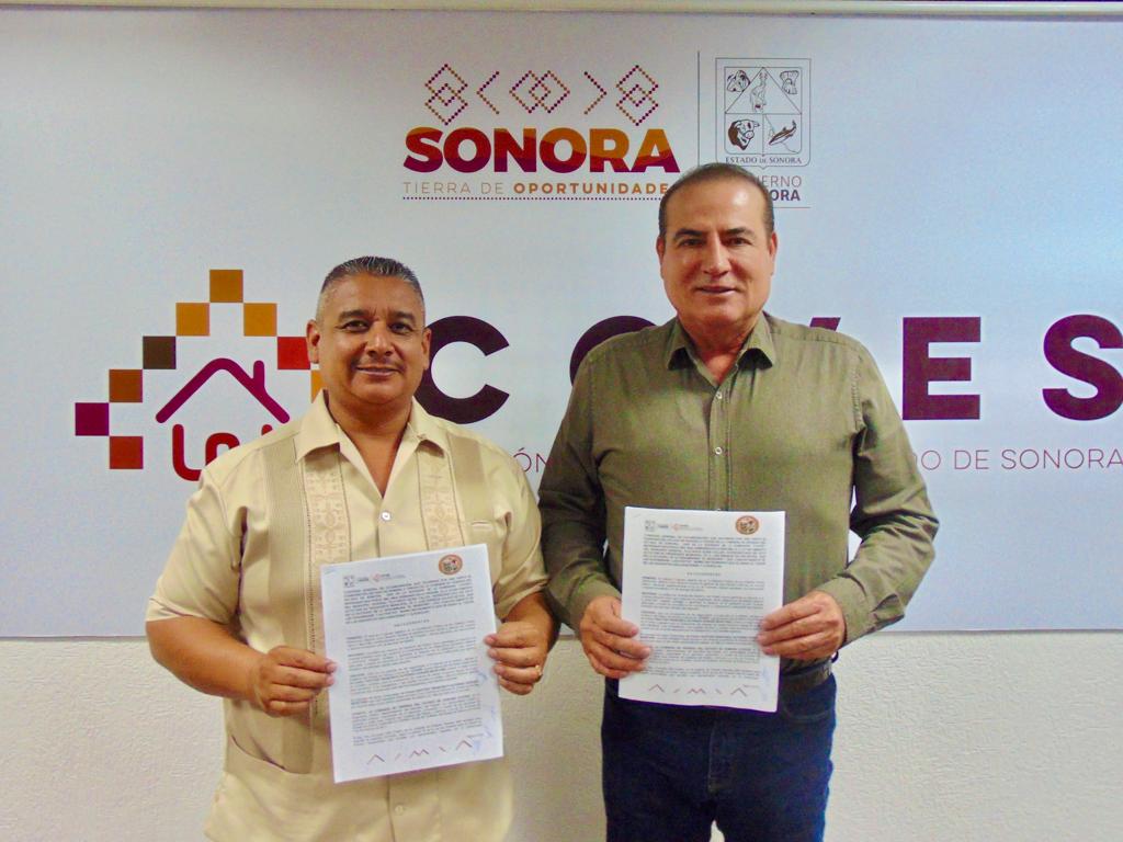 El director de la Comisión de Vivienda del Estado de Sonora (Coves), Armando Villa Orduño, y el presidente municipal de Plutarco Elías Calles, Luis Enrique Valdez Reyes, suscribieron el acuerdo para trabajar de manera conjunta para apoyar a la población más vulnerable.