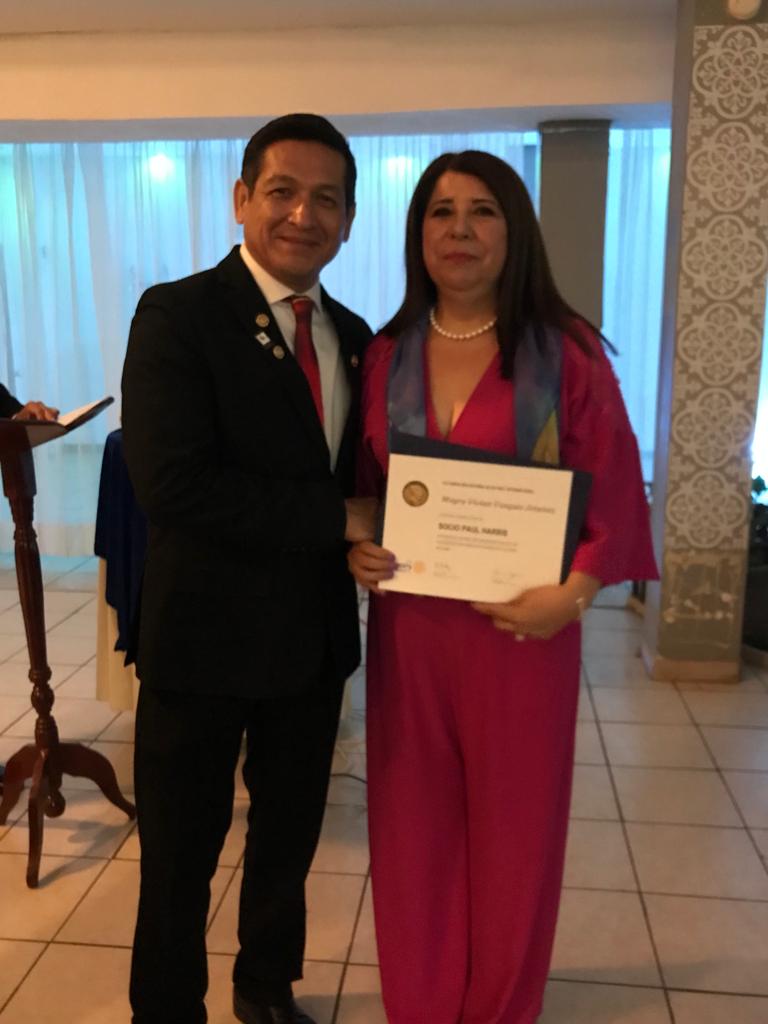 Un momento muy especial se vivió en esa noche de gala la entrega de reconocimiento Paul Harris: a Blanca Azucena Campa Ruiz certificado y pin el certificado se entrega solo una vez 2.- Ana Delia González de Yáñez certificado y pin . Efigenia Briones Ramírez certificado y pin Gloria Tapia certificado y pin . Claudia Irene Valencia León certificado y pin Ricardo Ortega pin, Mayra de Ortega certificado, Miguel Akiyama pin .- Rodolfo Boites pin , Demetrio Guerra pin,- Francisco Aguilar pin, Blanca de Aguilar, Sergio Duarte pin .- Ignacio Ibarra pin .- Paulino Yáñez pin,. Ivan de México pin.- Rubén Rojas pin . Ricardo Ortega pin, Porfirio Montes pin, José Luis Barragan pin. Después de las felicitaciones llego el momento de saborear una deliciosa cena que fue preparada especialmente para la feliz ocasión y en donde se brindó en repetidas ocasiones por el éxito de la nueva mesa directiva. ¡Felicitaciones.