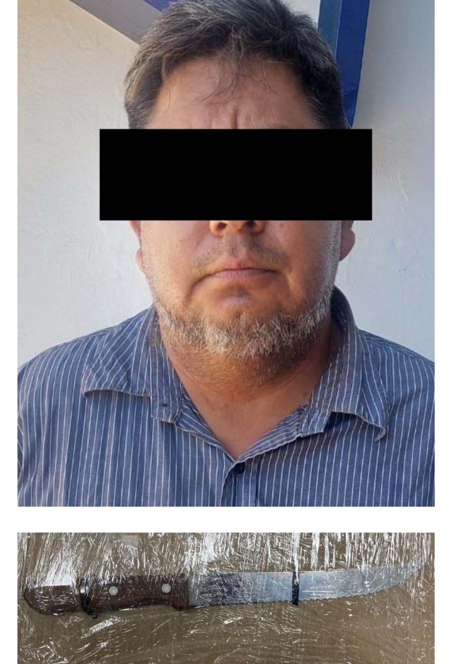 Los hechos se registraron la tarde del sábado 1 de julio, en una vivienda ubicada sobre la calle Paricutin en la colonia Las Lomas, en el sitio se reportó violencia familiar, acudiendo oficiales de la Policía Estatal y municipal para dialogar con el hombre que dijo llamarse Álvaro “N” de 47 años de edad, quien fue señalado por violencia y sorprendido en posesión de un arma blanca.