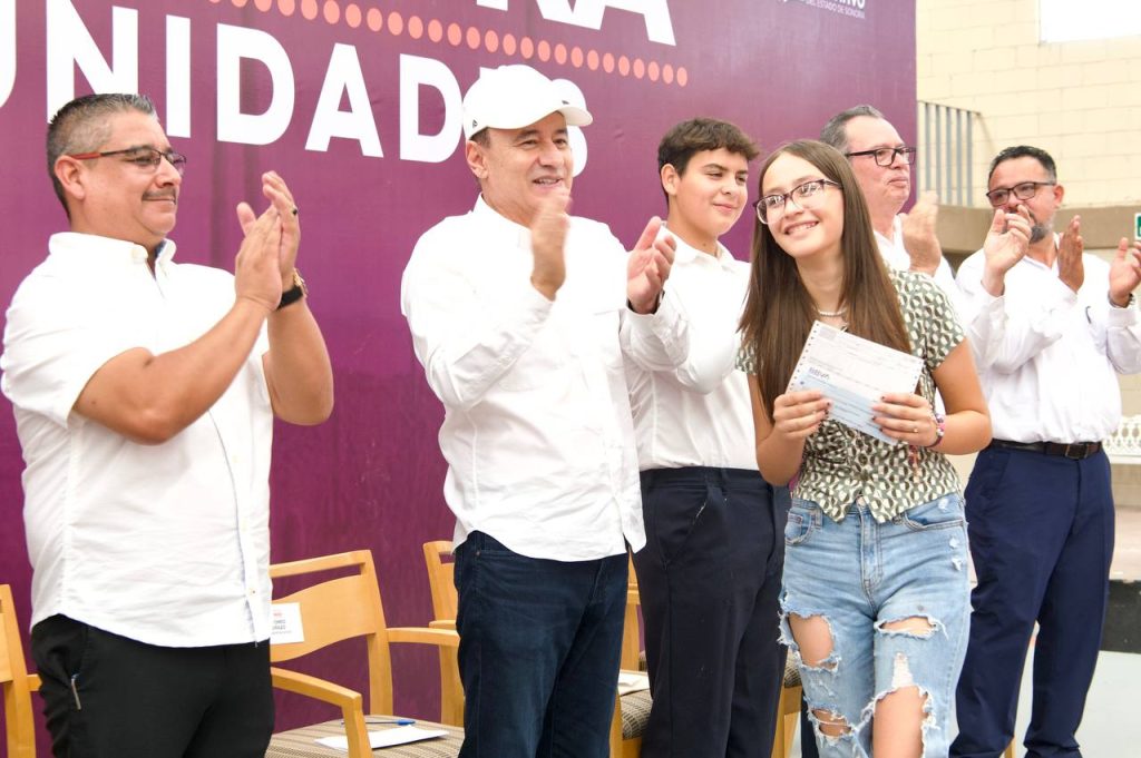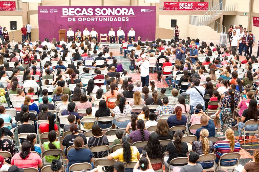 En gira de trabajo por General Plutarco Elías Calles, el mandatario entregó 836 becas de primaria y secundaria del programa Sonora de Oportunidades por un monto de un millón 672 mil pesos. Ante las y los estudiantes destacó que, al quedar elevado a rango constitucional este derecho, su administración garantiza un sistema universal con el que podrán continuar con sus estudios sin verse en la necesidad de suspender o terminar su formación académica por un tema económico.