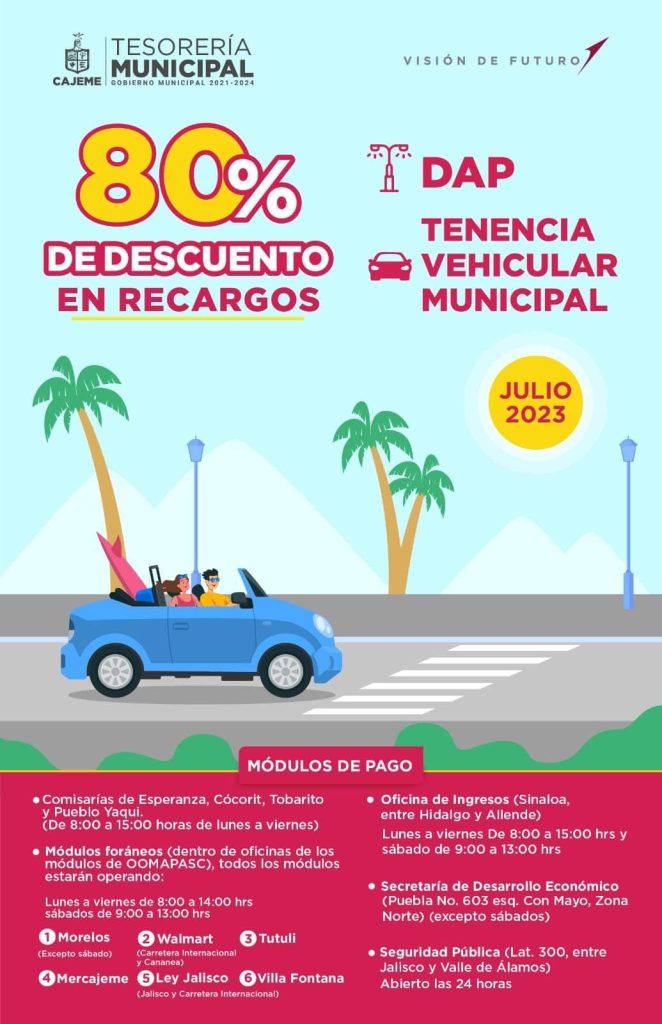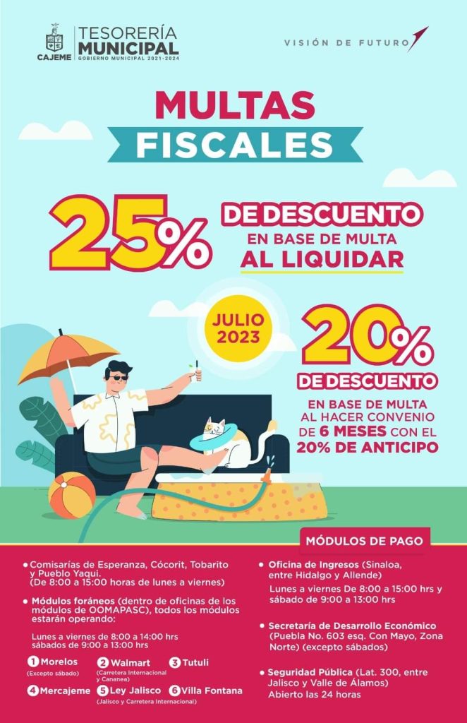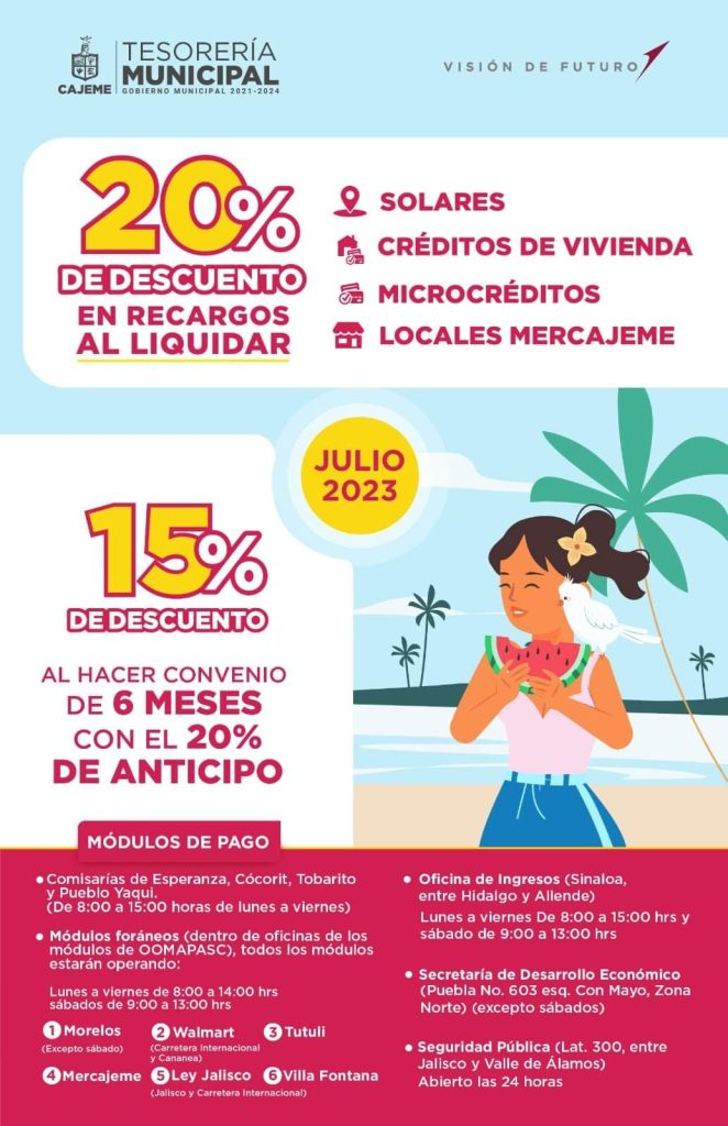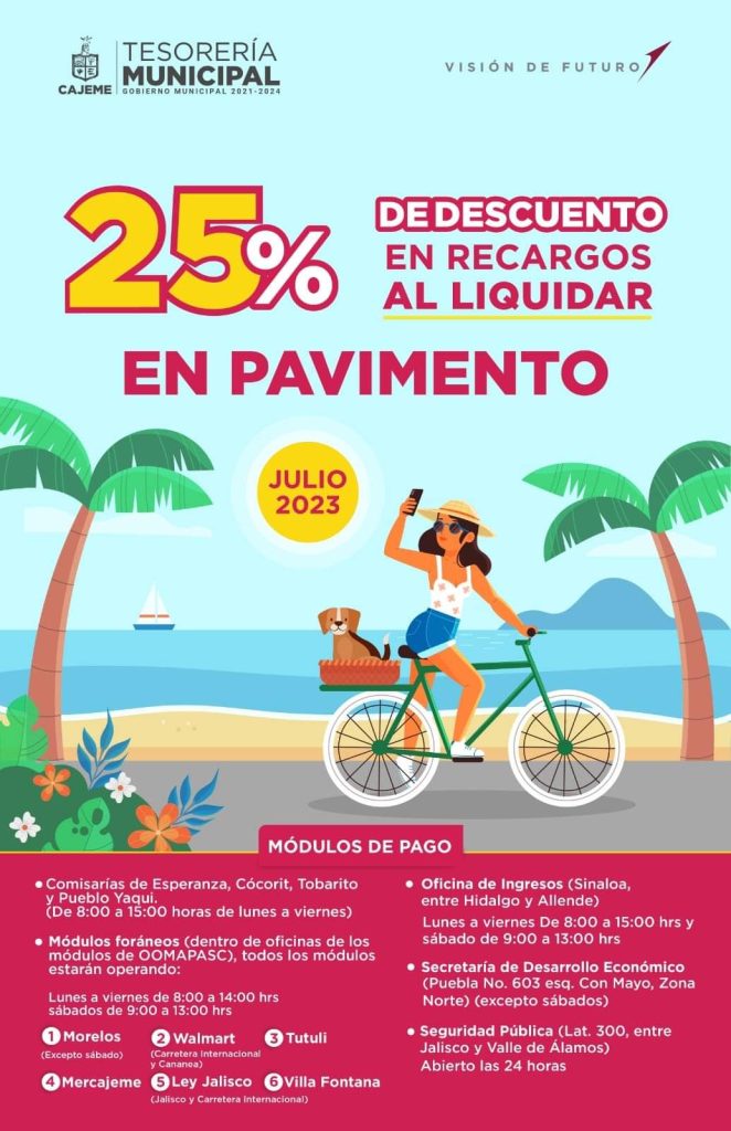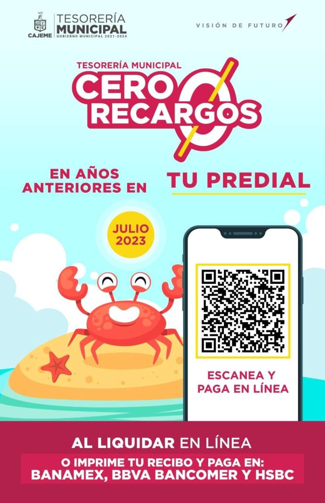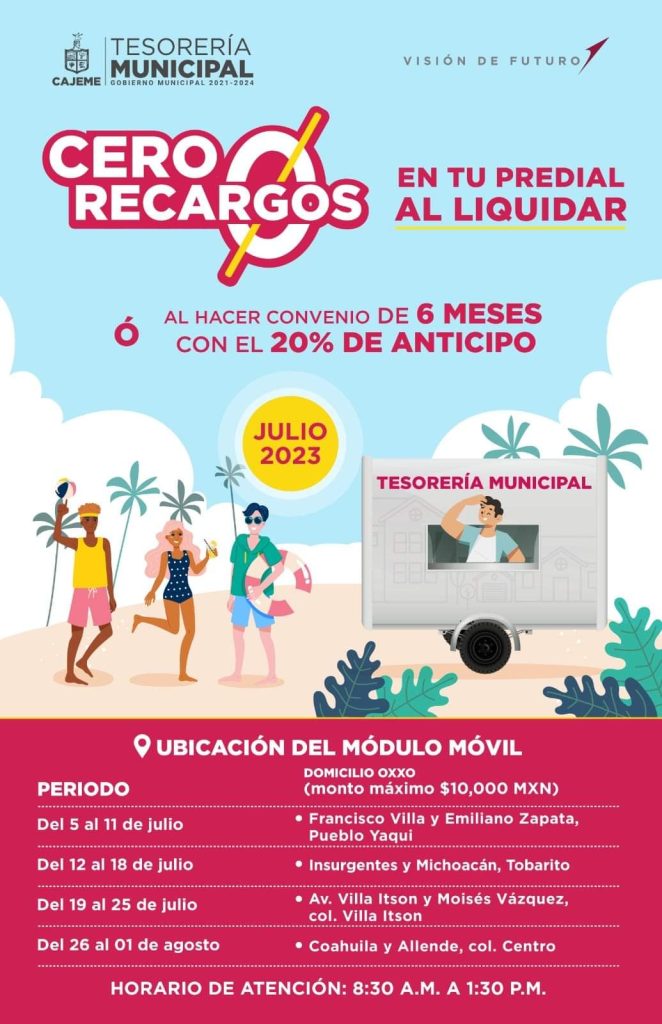 Obtén CERO RECARGOS en tu PREDIAL al pagar en LÍNEA o en ventanilla bancaria y en el portal del Municipio de Cajeme