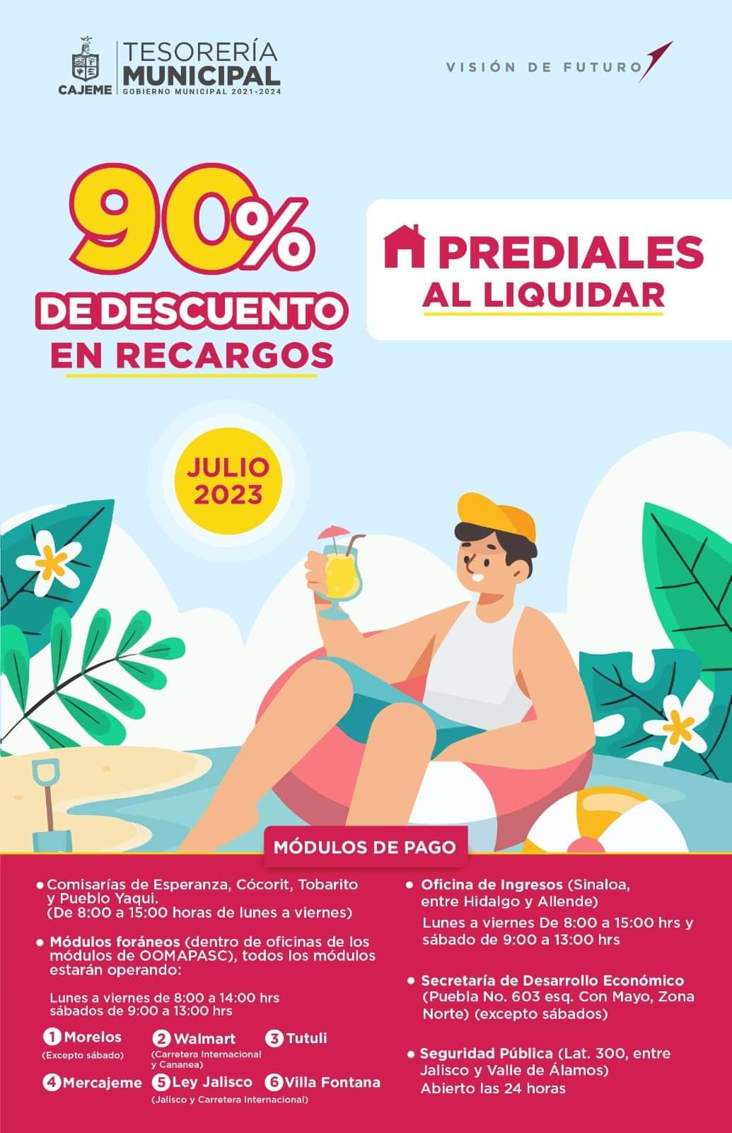 Obtén CERO RECARGOS en tu PREDIAL al pagar en LÍNEA o en ventanilla bancaria y en el portal del Municipio de Cajeme