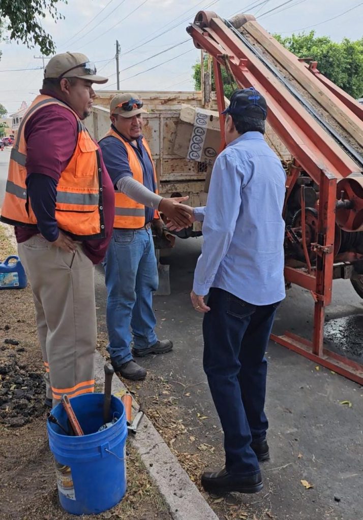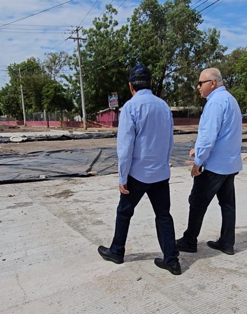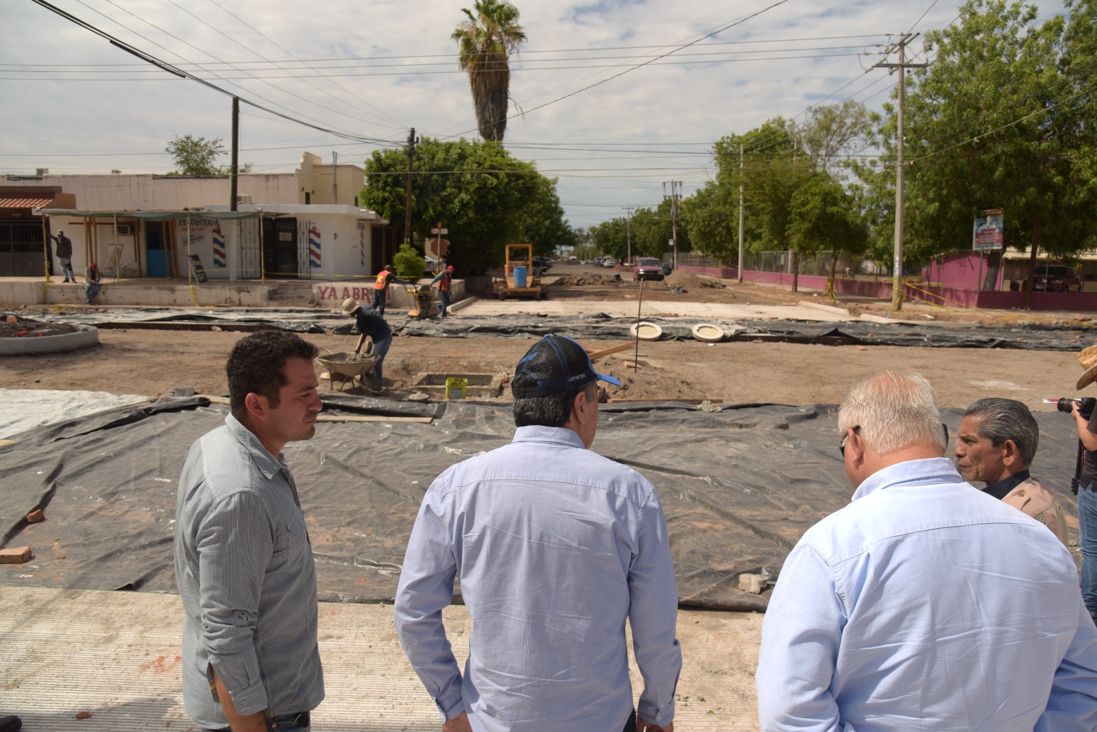 +Tras la primera lluvia registrada en Cajeme, el Alcalde verifica la continuidad en los trabajos de pavimentación de vialidades