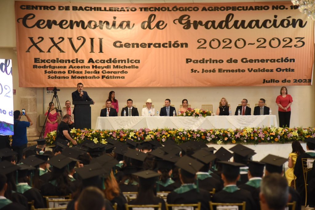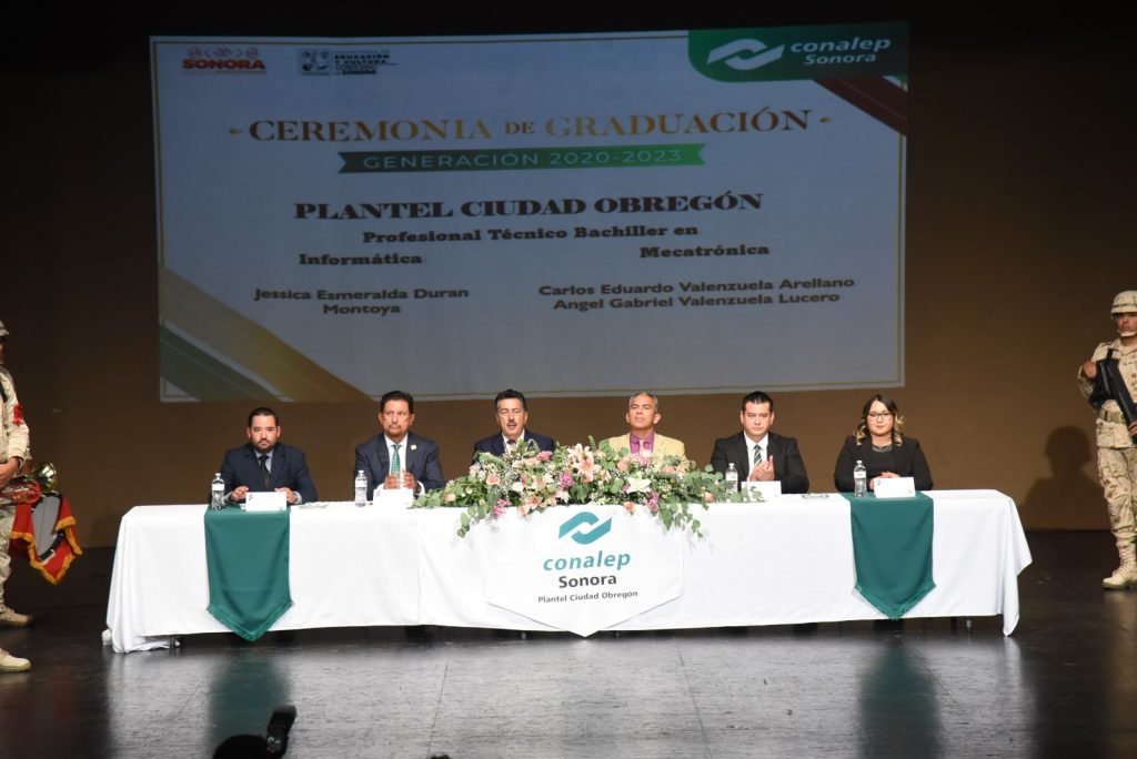 “Son ustedes una generación heroica, ya que con grandes esfuerzos y la voluntad de salir adelante, lograron sortear las condiciones de restricción derivadas de la pandemia por Covid-19, porque se encontraron en las aulas después de casi dos años de estudios a distancia y continuaron su preparación académica de la mano de sus maestras y maestros, hoy gracias a esa tenacidad están hoy aquí, en esta ceremonia de graduación que cierra una etapa más de su vida y, a la vez, los obliga a seguir preparándose para ser excelentes profesionista y mejores personas en búsqueda de la superación y del bienestar social para sus familias y la comunidad en general”, manifestó el Presidente Municipal, Javier Lamarque Cano, durante su participación en las ceremonias de graduación del Centro de Bachillerato Tecnológico Agropecuario (CBTA) 197 y del Colegio Nacional de Educación Profesional Técnica (CONALEP), plantel Ciudad Obregón.