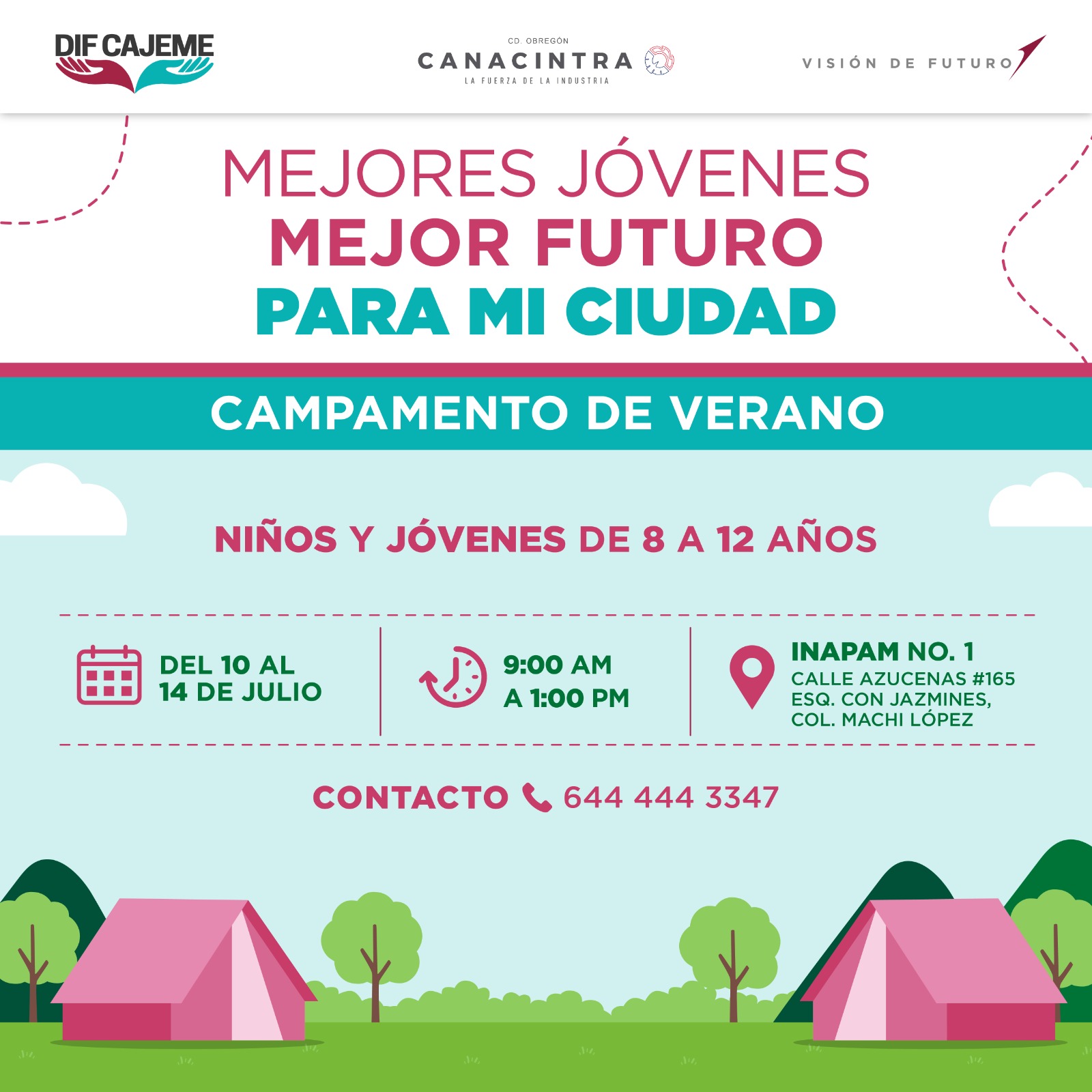 DIF Cajeme en coordinación con CANACINTRA abren inscripciones para el Campamento “Mejores Jóvenes, Mejor Futuro para mi Ciudad”, donde niñas, niños y adolescentes podrán aprender, divertirse y conocer sobre el sector industrial y laboral.
