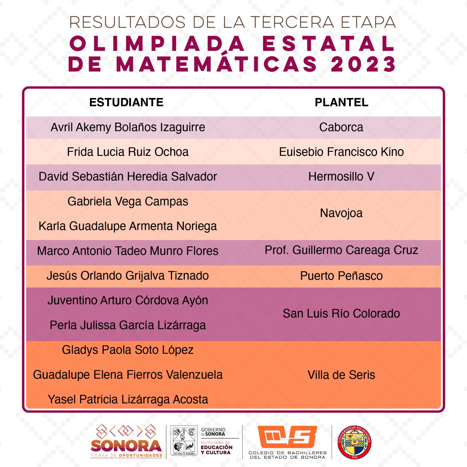 Hermosillo.- Un total de 12 estudiantes del Colegio de Bachilleres del Estado de Sonora (Cobach), de siete planteles, están en la final en la que compiten por uno de los seis lugares para integrar la delegación que asistirá a la Olimpiada Nacional de Matemáticas.