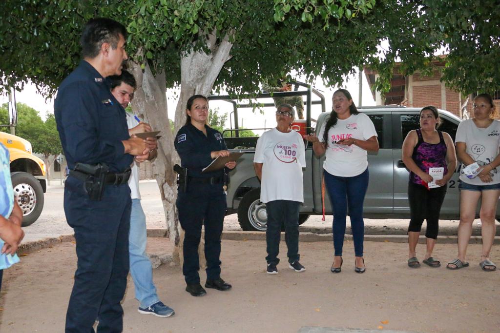 El Comisario Claudio Cruz Hernández, Jefe de la Policía Preventiva y Tránsito Municipal encabezó la reunión vecinal con las y los pobladores, con quienes se comprometió a redoblar los barridos de vigilancia en dicho sector y exhortó a la denuncia ante los números de emergencias 911 y 089.