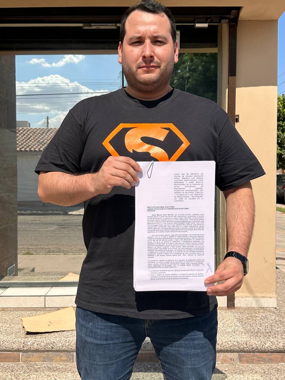 Hermosillo.- Movimiento Ciudadano Sonora, representado por Manuel Scott Sánchez, coordinador estatal, presentó en la sede del Instituto Nacional Electoral en el estado, recurso de queja en contra de Claudia Sheinbaum Pardo, Marcelo Luis Ebrard Casaubón y Adán Augusto López Hernández, así como de quienes resulten responsables, por la comisión de actos anticipados de precampaña y campaña; promoción personalizada, y violación a los principios de imparcialidad y equidad en la contienda.