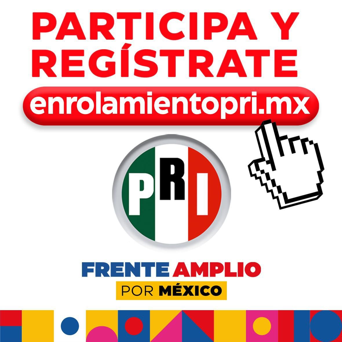 “Sé parte de la construcción del Frente Amplio por México. Entra a https://enrolamientopri.mx, regístrate y da tu apoyo al aspirante que prefieras”, agregó la dirigencia nacional del PRI. Sostuvo que la voz de la ciudadanía será tomada en cuenta, y destacó que con su participación “seguiremos avanzando en la construcción de un mejor país”.