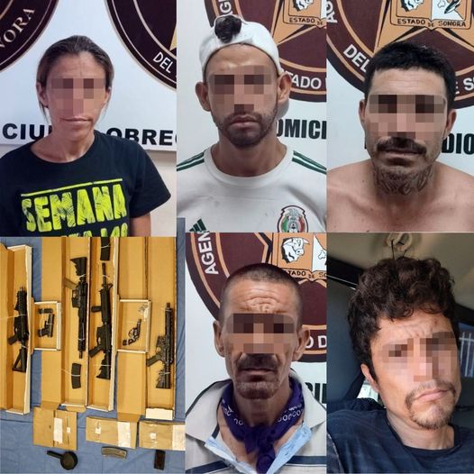Las cinco personas detenidas fueron identificadas como Lorenzo Isaías “N”, de 36 años, Jesús Ismael “N”, de 29 años, Irma Patricia “N”, de 39 años, Francisco “N” y Ramón Alberto “N”, siendo estos dos últimos asegurados en las inmediaciones de la vivienda, misma que se ubica en la colonia Matías Méndez, en Ciudad Obregón, municipio de Cajeme.