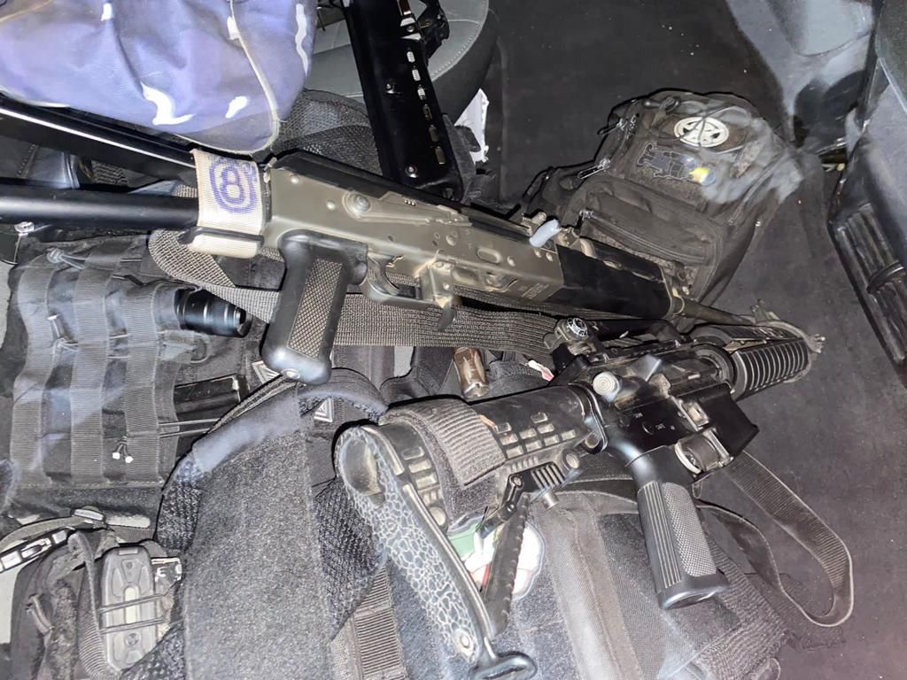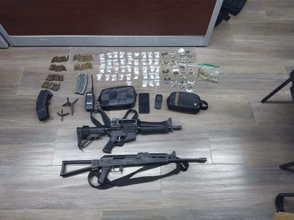Al llevarse la inspección se aseguraron 40 envoltorios de plástico con polvo blanco con las características de la droga conocida como cocaína; 20 envoltorios de plástico con hierva verde y seca, con característica similares al narcótico conocido como marihuana; dos armas largas; tres cargadores útiles para diferentes calibres; 72 cartuchos de diferentes calibres; un radio; dos artefactos poncha llantas y dos celulares. Por lo que, las personas detenidas e indicios asegurados, fueron puestos a disposición de la FGR.