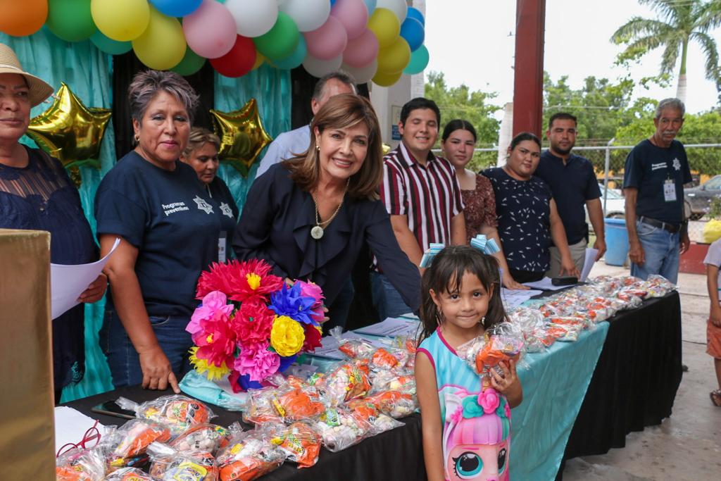 “Estamos muy contentos de estar aquí en el Campo 29 con las y los niños de este sector, así como con las madres de familia presentes a quienes felicitamos por involucrarse en este tipo de eventos que fortalecen el núcleo familiar”, expresó la Presidenta del Voluntariado.