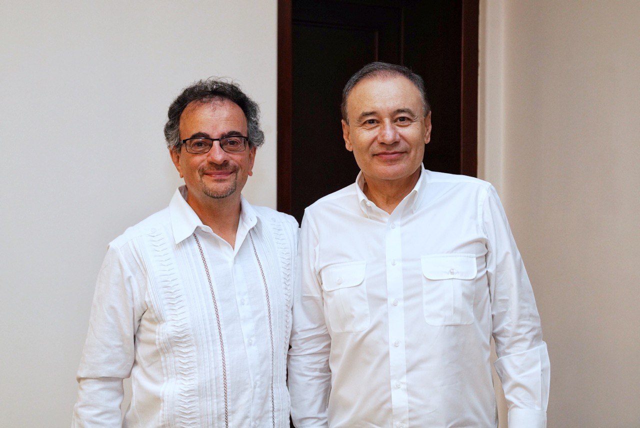 Hermosillo- Como parte de las acciones de promoción del estado como un destino de inversión en materia de energías limpias, el gobernador Alfonso Durazo Montaño sostuvo un encuentro con el embajador del Reino Unido, Jon Benjamin, a quien le presentó el Plan Sonora de Energía Sostenible y el Programa Social de Generación Solar Distribuida.