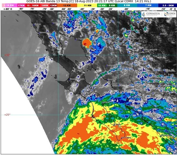 Se empieza a desarrollar rápidamente una celda con potencial de dejar algunos acumulados importantes por la zona noroeste del estado de Sonora, en las imágenes satelitales se muestra potencial para los municipios de Puerto Peñasco, Caborca, Sonoyta, y Altar.
