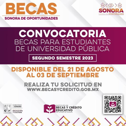 Hermosillo.- Del 21 de agosto y hasta el 3 de septiembre próximo, el Gobierno de Sonora mantendrá abierta la segunda convocatoria para la asignación de becas a estudiantes de universidades públicas como parte del programa Sonora de Oportunidades, que tiene como objetivo ayudar a que los jóvenes del estado a continúen sus estudios de nivel superior sin limitaciones económicas.