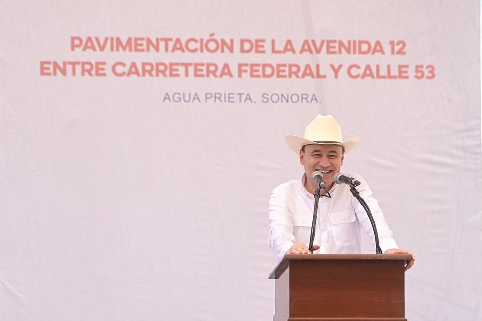 Agua Prieta.- Con el arranque de la pavimentación de la Avenida 12, entre carretera federal y Calle 53, el Gobierno de Sonora destinará 49.91 millones de pesos para beneficiar a 91 mil personas, como parte de las obras que se llevan a cabo en la entidad con el crédito de dos mil 100 millones de pesos aprobado por el Congreso del Estado, informó el gobernador Alfonso Durazo Montaño.