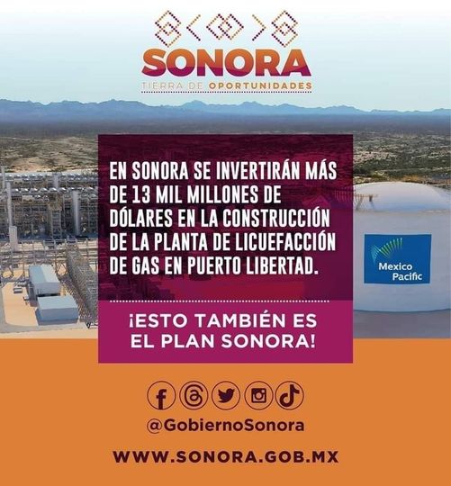 Con la construcción de la planta de licuefacción en Puerto Libertad, Sonora, se logra la inversión privada en infraestructura energética más grande de la historia en México: 13 mil millones de dólares