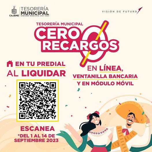 Llegó el mes de la Patria y seguimos con los descuentos de Tesorería Municipal con cero recargos en tu predial al pagar en línea o en ventanilla bancaria y en el módulo móvil, además obtén un 50 por ciento de descuento en tus multas de tránsito y un 25 por ciento de descuento en tus multas fiscales.