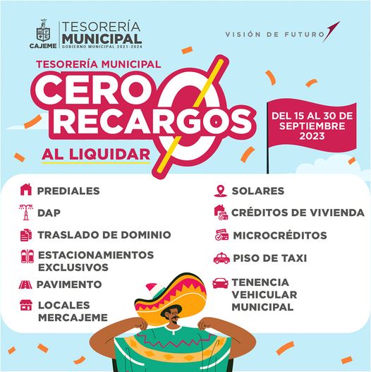 Seguimos con los descuentos de Tesorería Municipal con cero recargos en tu predial al pagar en línea o en ventanilla bancaria y en el módulo móvil, además obtén un 70 por ciento de descuento en tus multas de tránsito y un 50 por ciento de descuento en tus multas fiscales.