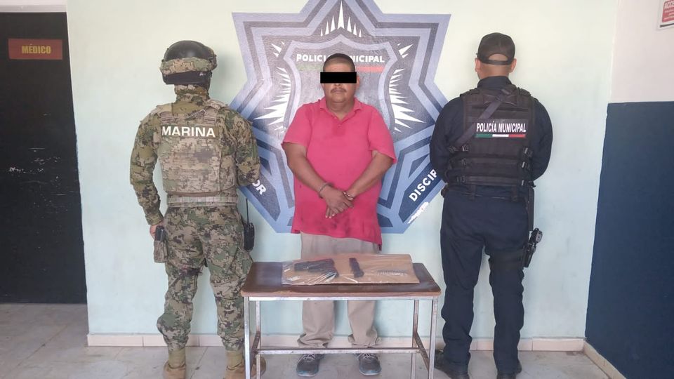 El detenido fue identificado con el nombre de Jorge Omar “N.”, de 42 años, a quien se le aseguró un arma de fuego corta y diversos cartuchos útiles.
