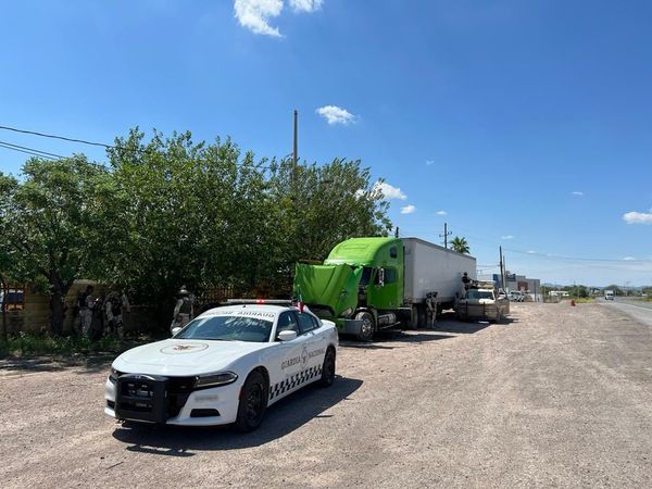 Al llegar al sitio señalado en la denuncia, ubicado sobre la carretera Hermosillo-Nogales, a la altura del kilómetro 165+300, en el municipio de Santa Ana, los elementos observaron un tractocamión con semirremolque tipo caja seca, el cual fue inspeccionado.