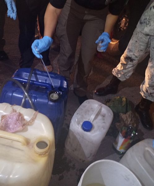 En cumplimiento de la Estrategia Nacional de Seguridad Pública y para contribuir a la Estrategia Nacional de Prevención de Adicciones Juntos por la Paz, integrantes de la Guardia Nacional (GN) en coordinación con personal del Ejército Mexicano localizaron aparente metanfetamina líquida dentro del tanque de gasolina de un tractocamión abandonado.