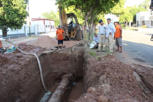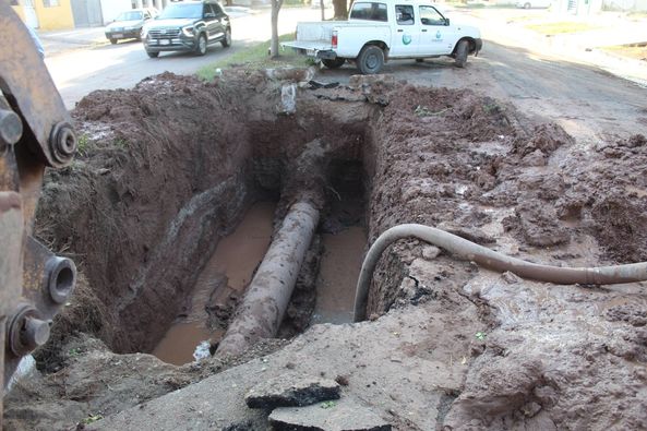 La tarde noche de este martes, trabajadores del área de redes atendieron la fuga que se presentó en línea principal del 20” que suministra agua potable a colonias del poniente, centro y norte de la ciudad.